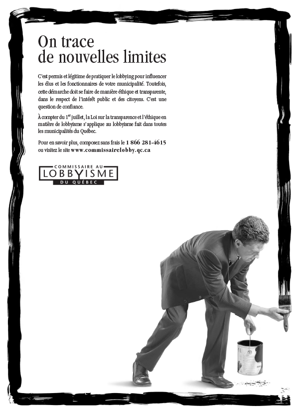 Informer la population québécoise de l’entrée en vigueur de nouvelles normes de transparence et d’éthique entourant la pratique du lobbyisme au niveau municipal.