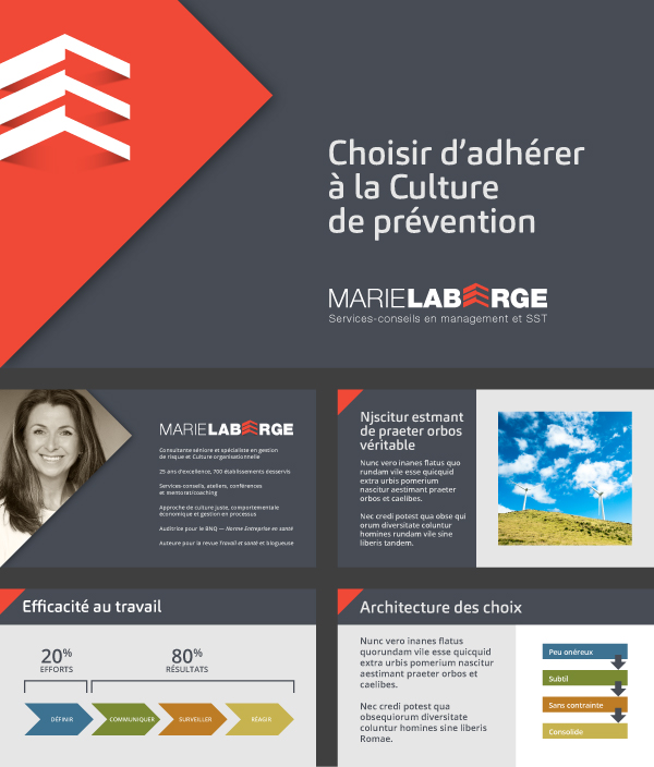 Marie Laberge PowerPoint Avec son approche personnalisée, axée sur la transparence, Marie Laberge propose des solutions durables aux organisations désirant se surpasser en matière de gestion de la santé, de la sécurité et de l’environnement.