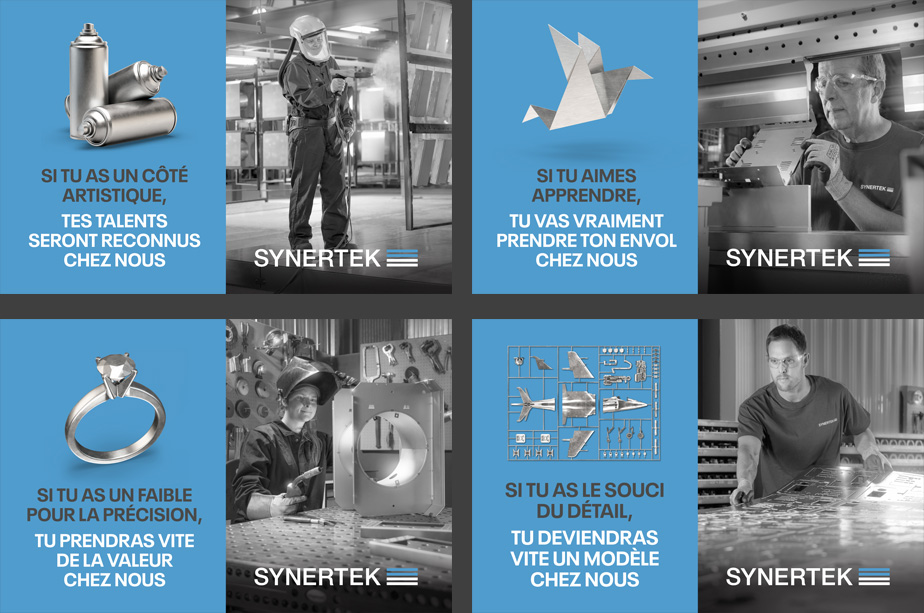 Électronique : Section carrières du site web de Synertek, bannières web, adaptation au profil LinkedIn et sur les différents sites de recherche d’emplois.